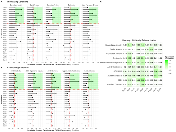Differential node importance plots to identify approach-withdrawal nodes that are relevant to specific co-occurring conditions